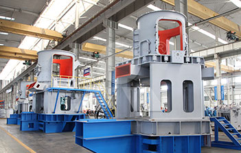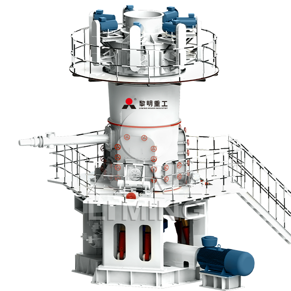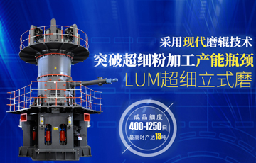 LUM超細(xì)立磨主要由電動機(jī)、減速機(jī)、磨輥裝置、磨盤裝置、加壓裝置、選粉機(jī)、機(jī)體和油站等組成。 主電機(jī)通過減速機(jī)帶動磨盤轉(zhuǎn)動,同時風(fēng)從進(jìn)風(fēng)口進(jìn)入磨機(jī),物料經(jīng)螺旋給料機(jī)下料口落在磨盤中央,在離心力的作用下,物料從磨盤中央向邊緣均勻移動,經(jīng)過磨盤上的粉磨輥道區(qū)域時,受到磨輥的碾壓,大塊物料直接被壓碎,細(xì)粒物料受擠壓后形成料床進(jìn)行粒間粉碎。被粉碎的物料繼續(xù)向磨盤邊緣移動,直到被風(fēng)環(huán)處的強(qiáng)氣流帶走,而較大的顆粒物料又重新掉落到磨盤上繼續(xù)粉碎,氣流中的物料經(jīng)過上部的分離器時,在轉(zhuǎn)子葉片的作用下,粗顆粒重新回到磨盤上粉磨,合格的細(xì)粉隨氣流一起出磨,被系統(tǒng)的集粉器收集,被收集到的粉料即為超細(xì)立磨磨出的產(chǎn)品。混入物料的鐵塊等雜物隨物料運(yùn)動到磨盤邊緣時,由于自身重量大而不能被風(fēng)吹起,跌落至磨機(jī)下腔被安裝在磨盤底部的刮料板刮入排渣口排出機(jī)外。