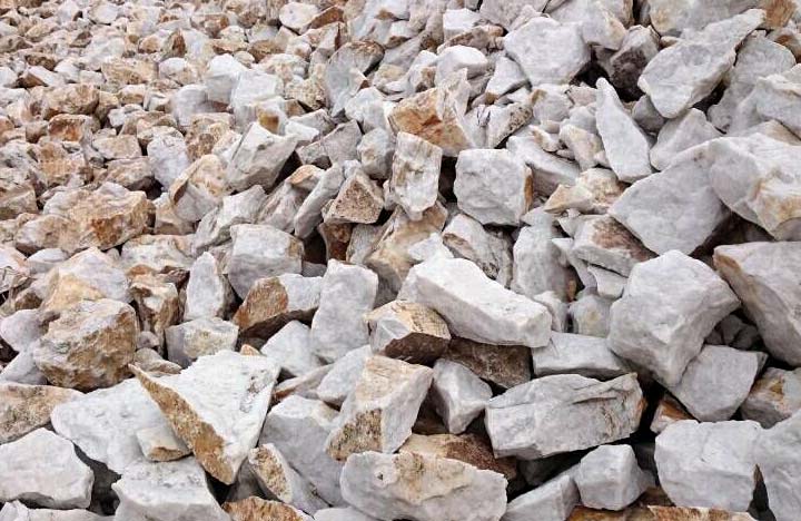 大塊石英石經(jīng)破碎機(jī)破碎到能進(jìn)入磨粉機(jī)的入料細(xì)度(15mm-50mm)。