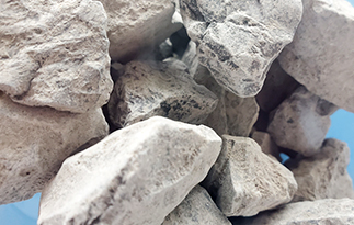 方解石大塊物料經(jīng)破碎機破碎到能進入磨粉機的入料細度(15mm-50mm)。