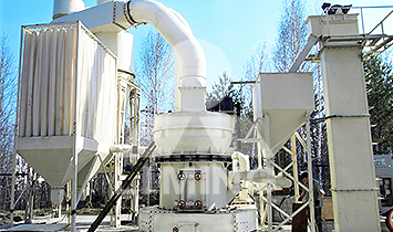 破碎后的方解石小塊物料經(jīng)提升機送至料倉,再經(jīng)振動給料機將其均勻定量的送入磨機研磨室內(nèi)進行研磨。