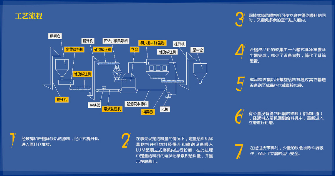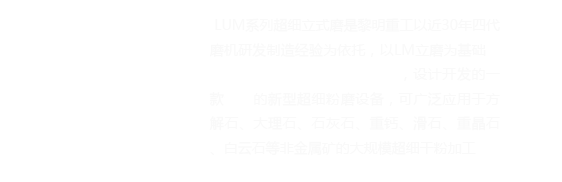 LUM系列超細(xì)立式磨主要由電動(dòng)機(jī)、減速機(jī)、磨輥裝置、磨盤裝置、加壓裝置、選粉機(jī)、機(jī)體和油站等組成。它的橫空出世使得一次性完成超細(xì)粉的粉磨、分級(jí)和輸送作業(yè)的設(shè)想現(xiàn)實(shí)化,其工藝參數(shù)、機(jī)械性能和成品粉品質(zhì)等技術(shù)指標(biāo)均與臺(tái)灣水平相當(dāng)。