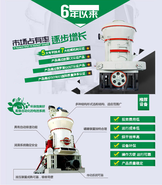 (1)同等產(chǎn)量下,投資金額僅為球磨機的二分之一,占地面積僅相當于4R雷蒙磨的三分之一,廠房基礎建設費用低,資金回籠快。